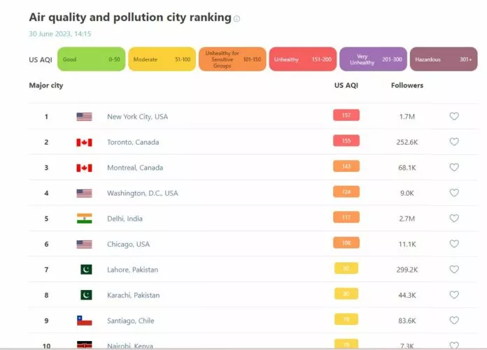 Patru orașe nord-americane se află azi în topul celor mai poluate orașe din lume, potrivit unui clasament întocmit de IQ Air.